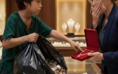 Een sjofele jongen stapte een luxe juwelierszaak binnen en morste talloze munten op de glimmende toonbank. Een bewaker wilde hem eruit zetten, maar de manager verstijfde toen hij de woorden van de jongen hoorde, die alle rijke klanten de mond snoerden.