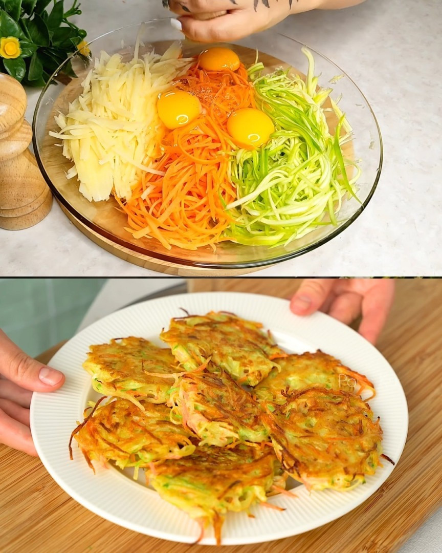 Ontdek een snel en eenvoudig recept voor heerlijke groentepannenkoeken! Deze pannenkoeken worden gemaakt van een mix van wortels, aardappelen en courgette, waardoor ze een gezonde en smakelijke optie zijn voor elke maaltijd. Of het nu voor het ontbijt, de lunch of als tussendoortje is, deze pannenkoeken zullen snel een vast onderdeel van je eetpatroon worden. Laten we beginnen!