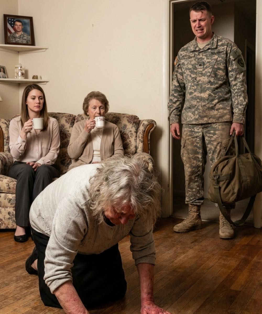 Op de bank achter me zaten mijn schoondochter Laura en haar moeder comfortabel, met de benen over elkaar en een kop koffie in de hand. Ze lachten zachtjes, scrolden door hun telefoons en tilden af en toe hun voeten net genoeg op zodat ik eronder kon vegen. Voor hen was ik geen familie. Ik was meubilair. Iets nuttigs, stils en makkelijk te negeren.