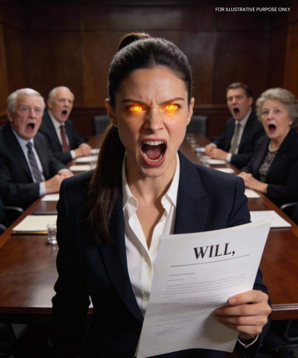 De advocaat sloot af met het voorlezen van een laatste clausule: elke poging om het testament aan te vechten zou leiden tot onmiddellijk verlies van zelfs symbolische erfenissen.
